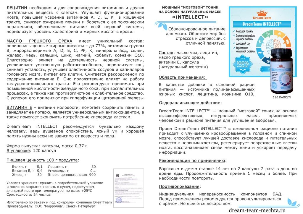 Надо просто начать с ежедневного приема DreamTeam iNTELLECT и получить пользу сегодня и в будущем.